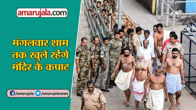 सोमवार को सबरीमाला मंदिर के कपाट भारी सुरक्षा के बीच खोल दिए गए। अब मंदिर के कपाट मंगलवार शाम को अत्थजा पूजा के बाद बंद किए जाएंगे। इस दौरान मंदिर दर्शन के लिए हजारों की तादाद में श्रद्धालु उमड़े।
