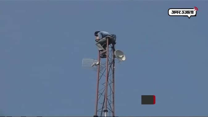 भोपाल में टावर पर चढ़ा किसान, आधे घंटे तक चला हाईवोल्टेज ड्रामा