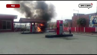 मऊ में पेट्रोल से भरे टैंकर में लगी आग