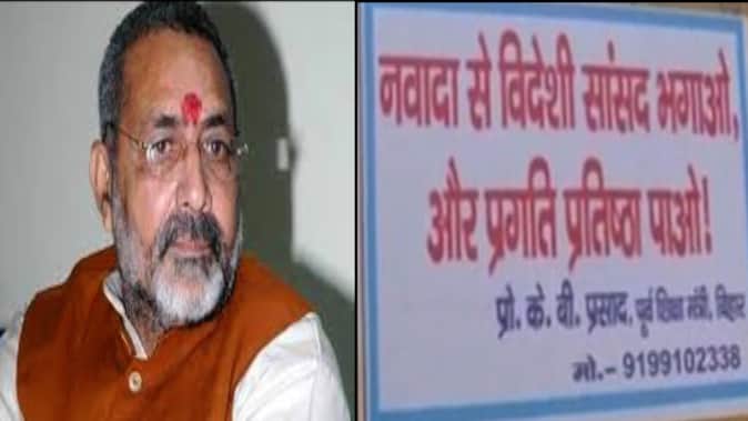 GIRIRAJ SINGH CALLED 'VIDESHI SANSAD' IN POSTERS IN HIS OWN CONSTITUENCY BY BIHAR EX MINISTER