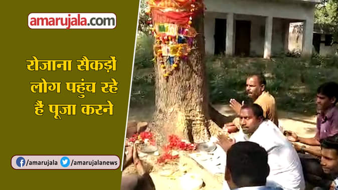 गोंडा में नीम के पेड़ से निकल रहा तरल पदार्थ, लोगों ने माना दैवीय शक्ति