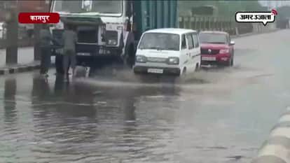 कानपुर में भारी बारिश से जलभराव, कई जगह धंसी सड़कें