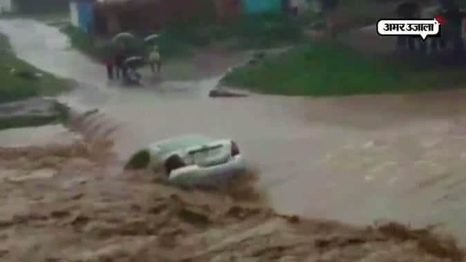 देखिए, कैसे बाढ़ के पानी में बह गई कार