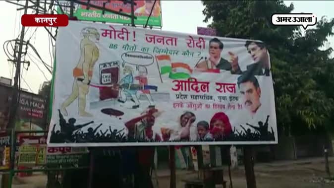 प्रधानमंत्री नरेंद्र मोदी की सोमवार को कानपुर के निराला नगर स्थित रेलवे मैदान पर रैली आयोजित होनी है। कहने को बीजेपी के लिए ये रैली नोटबंदी के बीच कई मायनों को दर्शा रही है लेकिन रैली से ठीक पहले मोदी का कानपुर में विरोध भी शुरू हो गया है। विपक्षी दलों खासकर कांग्रेस के स्थानीय नेताओ ने शहर के कई जगहों पर मोदी के विरोध में पोस्टर और होर्डिंग्स लगा दिए। हालांकि इस दौरान नाराज बीजेपी कार्यकर्ताओं ने मोदी विरोध में लगाए गए होर्डिंग्स को फाड़ कर अपना भी विरोध दर्ज करा दिया। उधर कांग्रेस नेताओं का कहना है कि नोटबंदी से आज हर कोई परेशान है। कई लोगों की असमय मौत हो चुकी है । ऐसे में प्रधानमंत्री मोदी की कानपुर में होने वाली रैली का वो होर्डिंग्स लगाकर विरोध कर रहे हैं।