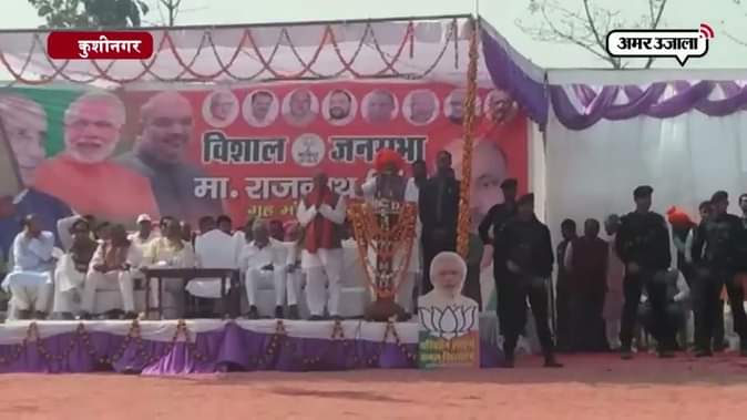 यूपी के कुशीनगर के कसया में चुनावी जनसभा को संबोधित करते हुए गृहमंत्री राजनाथ सिंह ने सर्जिकल स्ट्राइक का जिक्र किया और एक बार फिर पाकिस्तान को चेताया। गृहमंत्री ने कहा कि, जो भी भारत को आंख दिखाएगा, उसे छोड़ा नहीं जाएगा।
