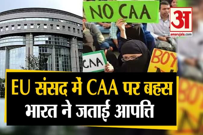 सीएए पर देश भर में हो रहे हंगामे, विरोध-प्रदर्शनों के बाद अब यह मामला EU संसद में पहुंच गया है। सीएए के खिलाफ पेश किए गए इस प्रस्ताव पर यूरोपीय संसद बहस और मतदान करेगी। भारत ने इस पर कड़ी आपत्ति जताते हुए इसे देश का आंतरिक मामला बताया है।