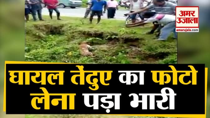 घायल तेंदुए का फोटो ले रहा था शख्स, अचानक हो गया हमला