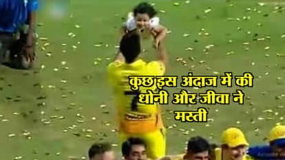 IPL 11 जीतने के बाद धोनी अपनी बेटी जीवा के साथ मस्ती करते नजर आए। सोशल मीडिया पर लोगों ने धोनी के इस अंदाज की जमकर तारीफ की। सोशल मीडिया पर फैन्स ने लिखा- जब टीम ट्रॉफी उठा रही थी। धोनी ने जीवा को उठाया। कोई शक नहीं क्यों हम धोनी को इतना प्यार करते हैं।