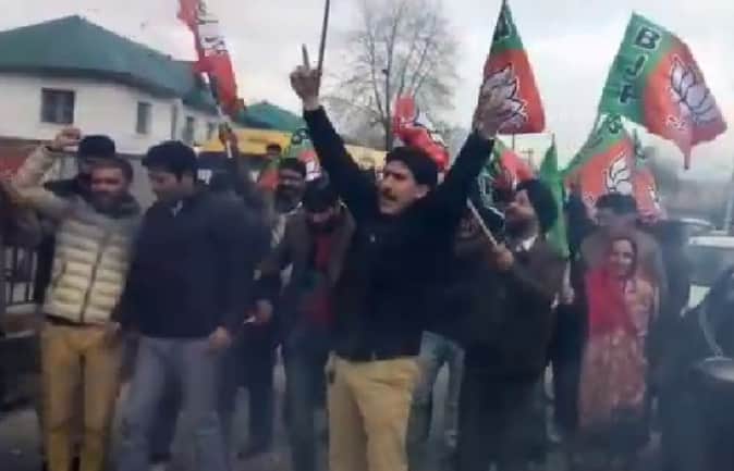कश्मीर घाटी में भी मना बीजेपी के जीत का जश्न