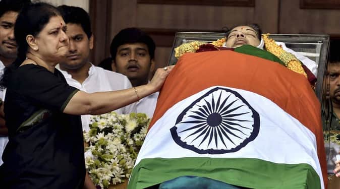 तमिलनाडु की मुख्यमंत्री जे.जयललिता नहीं रहीं...उनके निधन पर तमिलनाडु ही नहीं बल्कि पूरा देश शोक में डूबा हुआ है। अम्मा के नाम से महशूर जयललिता को चेन्नई के मरीना बीच पर दफनाया गया। एमजी रामचंद्रन की समाधि के करीब पूरे राजकीय सम्मान के साथ अम्मा का अंतिम संस्कार हुआ। अम्मा की करीबी शशिकला ने अम्मा की अंतिम रस्म पूरी की। अंतिम संस्कार से पहले अम्मा का पार्थिव शरीर राजाजी हॉल में अंतिम दर्शन के लिए रखा गया था। जहां प्रधानमंत्री नरेंद्र मोदी और राष्ट्रपति प्रणब मुखर्जी उन्हें श्रद्धांजलि देने पहुंचे थे। सोमवार रात साढ़े 11 बजे अम्मा का निधन हो गया था।