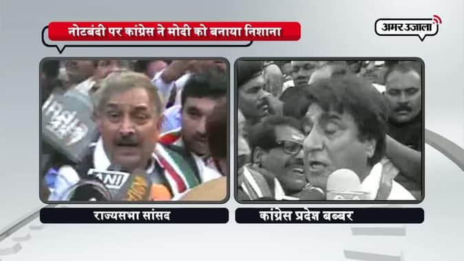 नोट बैन के मुद्दे पर कांग्रेस संसद से लेकर सड़क तक सरकार पर हमलावर है। कांग्रेस ने कानपुर में प्रदेश अध्यक्ष राज बब्बर के नेतृत्व में केंद्र के खिलाफ प्रदर्शन किया। जहां राज बब्बर ने सरकार के इस फैसले को तानाशाही बताया। वहीं, राज्यसभा सांसद प्रमोद तिवारी ने कहा, नोटबंदी का फरमान जल्द ही मोदी सरकार को जमीन पर ला पटगेगा।