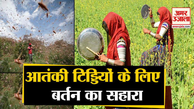 पाकिस्तान से आए टिड्डी नाम की आफत ने कोहराम मचा रखा है ऐसे में लोग अब बर्तन बजाकर टिड्डी दल को भगा रहे हैं। देखें वीडियो।