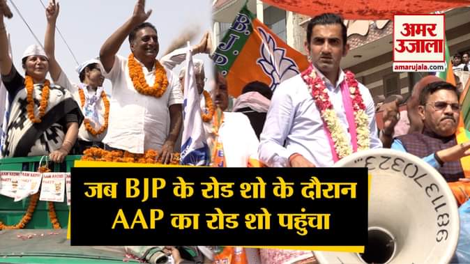भाजपा के रोड शो के दौरान आप का रोड शो पहुंचा, फिर क्या हुआ, देखें वीडियो