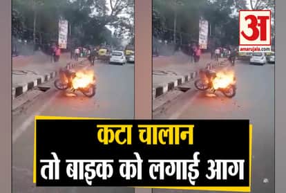 चालान कटने से नाराज युवक का कारनामा, बाइक को लगा डाली आग