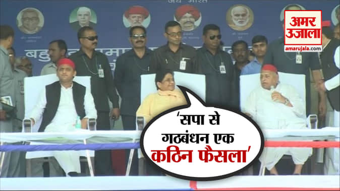 लोकसभा चुनाव 2019 में भाजपा को हराने के लिए समाजवादी पार्टी, बहुजन समाज पार्टी और राष्ट्रीय लोकदल एक साथ चुनाव मैदान में हैं। इसकी एक ऐतिहासिक तस्वीर दो दशक बाद तब दिखाई दी जब मुलायम सिंह यादव और मायावती एक मंच पर दिखाई दिए। तस्वीर यूपी के मैनपुरी की है जहां मुलायम सिंह को जिताने की अपील की बसपा अध्यक्ष मायावती ने। देखिए इस मौके पर इन दोनों ही नेताओं ने क्या कहा।