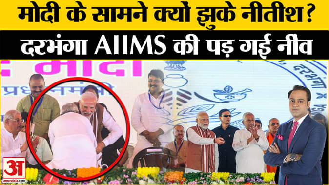 Nitish Kumar PM Modi Video: दरभंगा में AIIMS अस्पताल के शिलान्यास कार्यक्रम के दौरान नीतीश कुमार जब पीएम मोदी से मिलने पास पहुंचे तो उन्होंने झुककर उनके पैर छूने की कोशिश की। हालांकि, नीतीश कुमार को पैर छूते देख पीएम मोदी तुरंत कुर्सी से खड़े हुए और सीएम को ऐसा करते हुए रोक लिया।