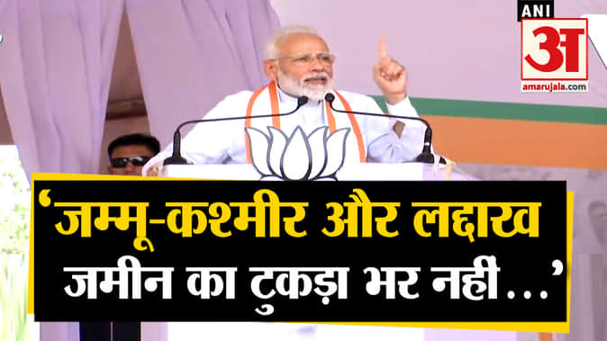 महाराष्ट्र के जलगांव में एक जनसभा को संबोधित करते हुए पीएम मोदी जम्मू कश्मीर से अनुच्छेद 370 हटाए हटाए जाने पर फिर बोलते नजर आए। उन्होंने कहा कि जम्मू-कश्मीर और लद्दाख हमारे लिए जमीन का टुकड़ा भर नहीं, भारत का मस्तक है।