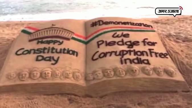 ओडिशा में सैंड आर्टिस्ट सुदर्शन पटनायक ने रेत की कलाकृति बनाकर संविधान दिवस की शुभकामनाएं दी । पद्मश्री से सम्मानित सुदर्शन पटनायक ने पूरी के बीच पर ये कलाकृति बनाई। जिसमें रेत से संविधान की किताब बनाई गई और उस पर संविधान दिवस की शुभकामनाएं लिखी। इसके साथ ही उन्होंने अपनी इस कलाकृति के जरिए भ्रष्टाचार मुक्त भारत का संदेश भी दिया।