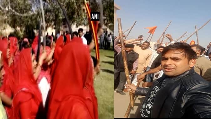 VIDEO: पद्मावत के विरोध में कहीं लहराई गईं तलवारें, तो कहीं दिखाई गईं लाठियां