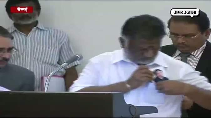जयललिता के निधन के बाद ओ पन्नीरसेल्वम तमिलनाडु के नए सीएम बने। रविवार को उन्हें विधायक दल का नेता चुना गया था। इसके बाद पन्नीरसेल्वम ने देर रात सीएम पद की शपथ ली। इस दौरान पन्नीरसेल्वम ने जयललिता की फोटो को अपने पास रखा। जयललिता की फोटो को अपनी जेब में रखकर पन्नीरसेल्वम ने सीएम पद की शपथ ली। पन्नीरसेल्वम जयललिता के सबसे भरोसेमंद नेता रहे। वो तीसरी बार राज्य के मुख्यमंत्री बने हैं। इससे पहले वो साल 2003 और 2014 में भ्रष्टाचार के दो अलग-अलग मामलों में जयललिता के दोषी ठहराए जाने पर मुख्यमंत्री बने थे। अम्मा की गैरमौजूदगी में वे उनकी फोटो रखकर कैबिनेट मीटिंग लेते थे। बजट स्पीच के वक्त भी उनके हाथ में और उनके सूटकेस में जयललिता की फोटो रहती थी।