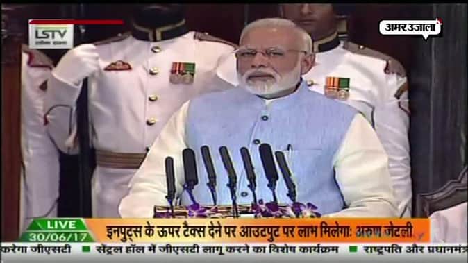 30 जून की आधी रात को पीएम मोदी ने लोक सभा के सेंट्रल भवन से देश को संबोधित करते हुए कहा कि जीएसटी एक राजनीतिक दल की विरासत नहीं है बल्कि सभी राजनीतिक दलों की सामूहिक विरासत है। इसके आगे पीएम मोदी ने कहा कि जीएसटी देश में आर्थिक एकीकरण सुनिश्चित करेगा और सभी राज्यों को करीब लाएगी साथ ही कहा कि देश अब एक नई दिशा को ओर बढ़ रहा है।
