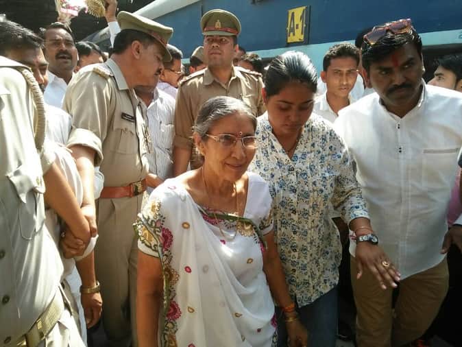 प्रधानमंत्री नरेंद्र मोदी की पत्नी जशोदाबेन शनिवार को आगरा पहुंची। आगरा में जशोदाबेन ने मंदिर में पूजा अर्चना के बाद फिरोजाबाद पहुंची। फिरोजाबाद का पालीवाल ऑडिटोरियम उस समय तालियों की गड़गड़ाहट से गूंज उठा जब प्रधानमंत्री नरेंद्र मोदी की पत्नी जशोदाबेन मोदी ने अपने भाषण के दौरान 'सबका साथ, सबका विकास' का नारा लगाया। इसके बाद पूरे ऑडिटोरियम नरेंद्र मोदी जिंदाबाद के नारों से सुनाई देने लगे।