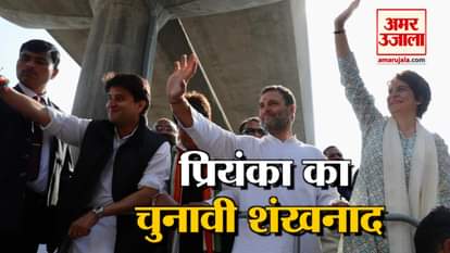 प्रियंका का मेगा रोड शो, देखिए एयरपोर्ट से कांग्रेस कार्यालय तक का सफर