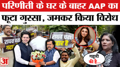 Raghav Chadha Joins BJP: AAP protests outside Parineeti Chopra's house. Kejriwal | AAP