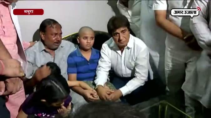 मथुरा में दो सर्राफा कारोबारियों की हत्या और लूटकांड को लेकर गुरुवार को कांग्रेस के प्रदेश अध्यक्ष राज बब्बर पीड़ित परिवार से मिलने उनके घर पहुंचे। पीड़ित परिजनों को सांत्वना देते हुए राजबब्बर ने कानून-व्यवस्था पर उंगली उठाई और योगी सरकार को निशाने साधा।