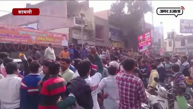 शामली में एसपी एमएलसी वीरेन्द्र सिंह गुर्जर ने अपने बेटे मनीष चौहान के लिए शहर में जुलूस निकालकर शक्ति प्रदर्शन किया।मनीष चौहान ने निर्दलीय प्रत्याशी के तौर पर अपना नामांकन दाखिल कराया।दरअसल पूर्व में समाजवादी पार्टी ने मनीष चौहान को प्रत्याशी घोषित किया था लेकिन गठबंधन की सूरत में शामली सीट कांग्रेस के खाते में चली गई तो मनीष चौहान बागी हो गए। वैसे नामांकन के दौरान हुए जुलूस में कार्यकर्ताओं के हाथों में अखिलेश यादव वाले होर्डिंग और बैनर भी देखे गए।