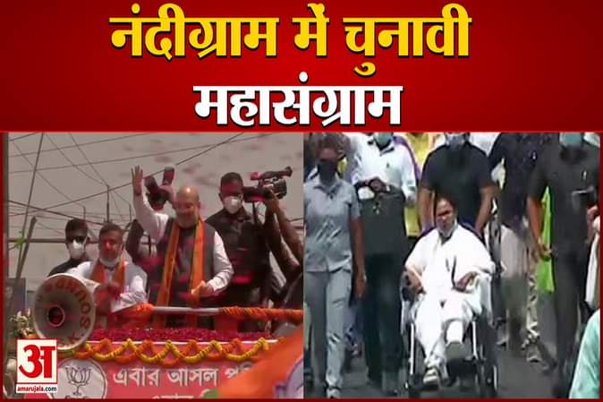 पश्चिम बंगाल में मंगलवार दूसरे चरण के मतदान के लिए प्रचार का अंतिम दिन है। राज्य की हॉट सीट बने नंदीग्राम विधानसभा में मुख्यमंत्री ममता बनर्जी और केंद्रीय गृह मंत्री अमित शाह के कार्यक्रम हुए। ममता बनर्जी जहां व्हीलचेयर पर बैठकर पदयात्रा पर निकली तो वहीं, शाह ने भी एक रोड शो में हिस्सा लिया।