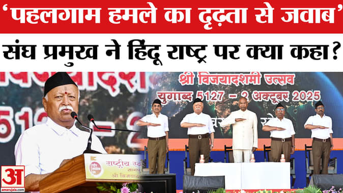 राष्ट्रीय स्वंयसेवक संघ यानी RSS प्रमुख मोहन भागवत ने संघ के 100 साल पूरा होने पर नागपुर में विजयदशमी उत्सव कार्यक्रम को संबोधित किया। इस मौके पर मोहन भागवत ने देश के लोगों से स्वदेशी की अपील की और पड़ोसी देशों में जारी उथल-पुथल का भी जिक्र किया। इसके साथ ही संघ प्रमुख ने पहलगाम हमले और ऑपरेशन सिंदूर का भी जिक्र किया। संघ प्रमुख ने पहलगाम आतंकी हमले का जिक्र कर कहा कि सीमा पार से आए आतंकवादियों ने 26 भारतीयों का धर्म पूछकर उनकी हत्या कर दी। इस आतंकी हमले से देश शोक और आक्रोश में था। पूरी तैयारी के साथ हमारी सरकार और सशस्त्र बलों ने करारा जवाब दिया।