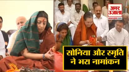 सोनिया गांधी ने रायबरेली तो स्मृति ईरानी ने अमेठी से भरा पर्चा
