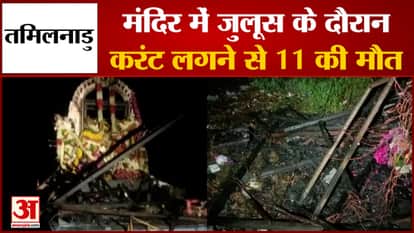 तमिलनाडु के तंजावुर जिले में एक बड़ा हादसा हुआ है। एक उत्सव के दौरान यहां मंदिर का रथ बिजली के तार से टकरा गया. ऐसे में करंट लगने से 11 लोगों की मौत हो गई। इसमें दो बच्चे भी शामिल हैं. ये हादसा उस वक्त हुआ जब मंदिर के रथ को श्रद्धालु खींच रहे थे. कहा जा रहा है कि भगवान अय्यपा का उत्सव मनाने के लिए मंगलवार की रात को भारी संख्या में लोग जमा हुए थे।