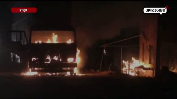 यूपी के हापुड़ जिले में हाईटेंशन तार की चपेट में आने से ट्रक में आग लग गई। आग इतनी भयानक थी कि मिनटों में ट्रक जलकर खाक हो गया। मौके पर फायर ब्रिगेड भी पहुंची, लेकिन तब तक आग बेकाबू हो चुकी थी।