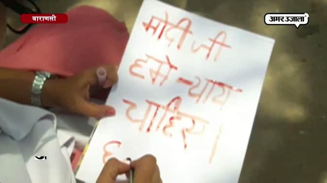 वाराणसी के एपेक्स नर्सिंग कॉलेज की छात्राओं ने प्रधानमंत्री मोदी को अपने खून से खत लिखा है। कॉलेज की छात्राओं ने पीएम मोदी से गुहार लगाई है कि कॉलेज से उनकी फीस की रकम वापस करवाई जाए क्योंकि कॉलेज में बिना कोर्स की मान्यता के ही नर्सिंग क्लास चलाई जा रही है और एडमिशन के वक्त छात्राओं को अंधेरे में रखा गया था।