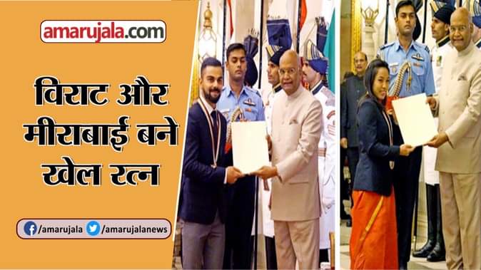 मंगलवार को राष्ट्रपति रामनाथ कोविंद ने राष्ट्रपति भवन में क्रिकेटर विराट कोहली और वेटलिफ्टर मीराबाई चानू को देश के सर्वोच्च खेल सम्मान राजीव गांधी खेल रत्न अवार्ड से सम्मानित किया। इनके अलावा राष्ट्रपति कोविंद ने 18 अर्जुन, 8 द्रोणाचार्य और 4 ध्यानचंद अवार्डी भी सम्मानित किए।