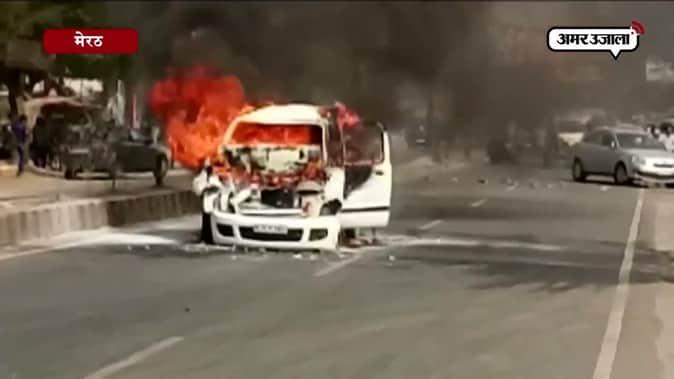 मेरठ के गढ़ रोड पर आनंद हॉस्पिटल के पास लोगों में उस समय हड़कंप मच गया, जब सड़क पर चलती हुई एक वैगनआर कार में अचानक आग लग गई। कार के चालक ने किसी तरह कार से कूदकर अपनी जान बचाई। बहरहाल, कार में आग लगने के कारण का पता नहीं चल सका है। लेकिन माना जा रहा है कि ज्यादा गर्मी या शार्ट-सर्किट की वजह से आग लगी होगी।