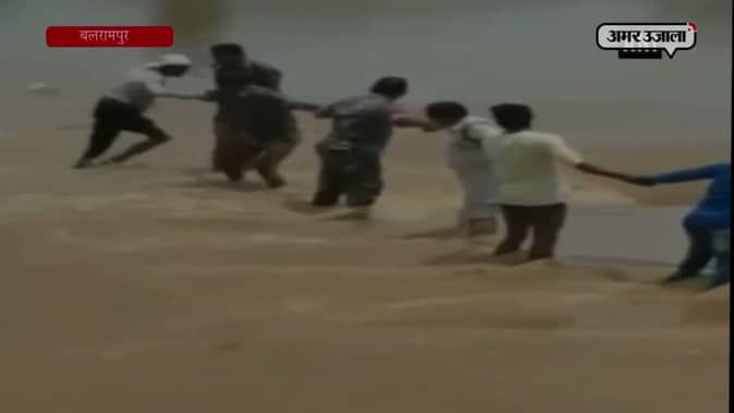 छत्तीसगढ़ के बलरामपुर में नदीं के उफान के बीच फंसे शख्स को बचाया गया। पिछले कई दिनों से हो रही लगातार बारिश की वजह से कनहर नदी में बाढ़ आ गई है। नदी की तेज लहरों के बीच फंसी इस शख्स को बचाने के लिए पुलिस और गांववालों ने मिलकर मानव श्रृंखला बनाई और इसे बाहर निकाल लिया गया।