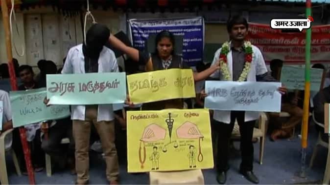कोयंबटूर के एक मेडिकल कॉलेज में पोस्ट ग्रेजुएट के स्टूडेंट्स ने एक अलग तरह का विरोध प्रदर्शन किया। मेडिकल स्टूडेंट्स इस बात से नाराज थे कि कोयंबटूर के सीएमसी अस्पताल में वॉक इन इंटरव्यू के जरिए डॉक्टरों की नियुक्ति हो गई। इसी के विरोध में पोस्ट ग्रेजुएट सर्विस डॉक्टरों ने ह्युमन चेन बनाकर प्रदर्शन किया साथ ही इन्होंने सांकेतिक तौर पर खुद को फांसी से फंदे से भी लटकाकर प्रदर्शन किया