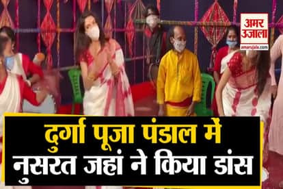 नुसरत जहां कोलकाता के दुर्गा पूजा पंडाल में पहुंचींं। यहां उन्होंने पारंपरिक नृत्य किया। उन्होंने ढाक भी बजाया। लाल और सफेद रंग की साड़ी में नुसरत बेहद सुंदर लग रही थीं।