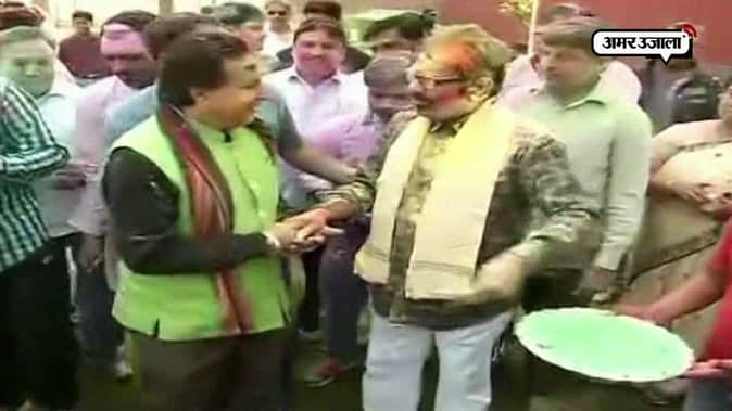 watch politicians celebrate holi in their own style