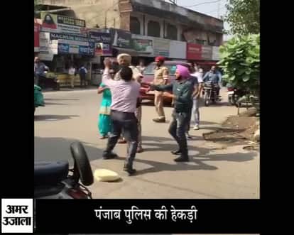 पंजाब पुलिस की गुंडागर्दी एक बार फिर कैमरे में कैद हो गई है। कपूरथला में जगजीत सिंह नाम के एक ASI ने स्कूटर से जा रहे दंपति को रोका और उनपर अपनी हेकड़ी झाड़नी शुरू कर दी। विरोध करने पर ASI ने पीड़ित पर लात-घूसे बरसानें शुरू कर दिए, जिससे उसकी पगड़ी तक सड़क पर गिर गई। ASI की दबंगई का ये वीडियो वायरल हो चुका है।