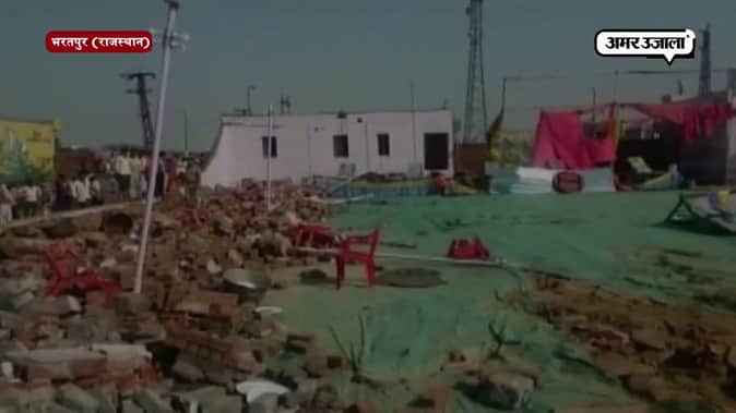 राजस्थान के भरतपुर जिले में एक मैरिज हॉल की दीवार गिरने से 25 लोगों की मौत हो गई। वहीं इस दुर्घटना में दो दर्जन से ज्यादा लोगों के घायल होने की खबर है, जिनमें से दो की हालत ज्यादा गंभीर बताई जा रही है। बताया जा रहा है कि घटना के वक्त सभी लोग भारी बारिश और तूफान से बचने के लिए दीवार की आड़ में खड़े थे। बारिश ज्यादा होने से दीवार लोगों के उपर ही गिर गई।