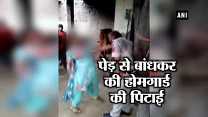 VIDEO: पेड़ से बंधा होमगार्ड, महिला बरसा रही है थप्पड़, जानिए क्यों?