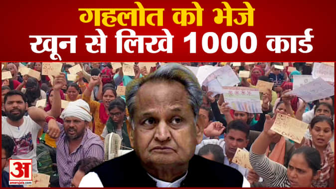 34 दिन से रात और दिन धरने पर बैठे कोविड स्वास्थ्य सहायकों ने अपने खून से 1000 पोस्ट कार्ड लिखे और मुख्यमंत्री गहलोत के पते पर भेजे कोरोना के समय में अस्थाई तौर पर कोविड स्वास्थ्य सहायकों की भर्ती की गई थी. गहलोत सरकार ने, कोविड के मामले लगभग खत्म होने के बाद बीते माह मार्च में 28000 CHA कोविड स्वास्थ सहायकों की अस्थाई नियुक्ति से हटा दिया गया