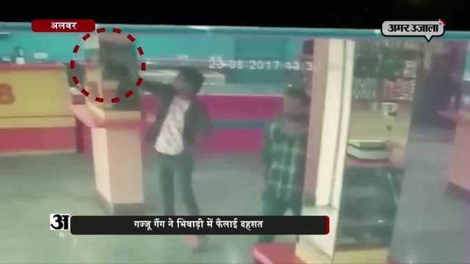अलवर के भिवाड़ी में मौजूद बीकानेर मिष्ठान भंडार पर बुधवार को गज्जू गैंग ने दिनदहाड़े फायरिंग कर दहशत फैला दी। चार हथियारबंद बदमाशों ने बीमएमबी के बाद दो और दुकानों को अपना निशाना बनाया। ये पूरी वारदात सीसीटीवी में कैद हो गई जिसकी बिनाह पर पुलिस आरोपियों की जल्द गिरफ्तारी की बात कर रही है। वहीं पुलिस का कहना है कि बदमाशों ने ये फायरिंग रंगदारी मांगने के लिए की थी।