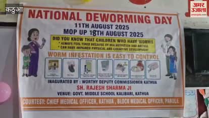 राष्ट्रीय कृमि मुक्ति दिवस के अवसर पर जिला स्वास्थ्य विभाग की ओर से मिडिल स्कूल कालीबड़ी में कार्यक्रम आयोजित किया गया, जिसमें उपायुक्त राजेश शर्मा ने विद्यार्थियों को एल्बेंडाजोल दवा की खुराक वितरित की। यह अभियान 18 अगस्त तक चलेगा, जिसके तहत जिले भर में 19 वर्ष से कम आयु के लगभग 1.89 लाख बच्चों को दवा दी जाएगी।