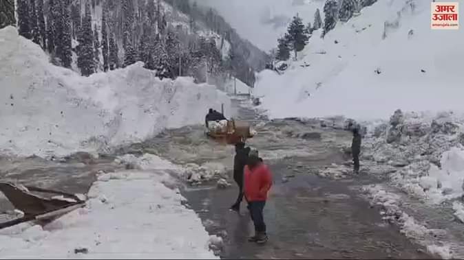 VIDEO : सोनमर्ग में हिमस्खलन, बर्फ के टीलों से सिंध नाला जाम, पानी में डूबी सड़क
