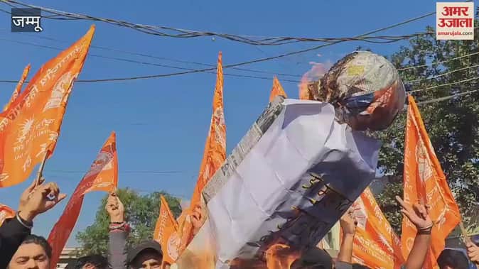 VIDEO : बांग्लादेश में हिंदू और धार्मिक स्थलों की सुरक्षा के लिए बजरंग दल का जम्मू में विरोध प्रदर्शन